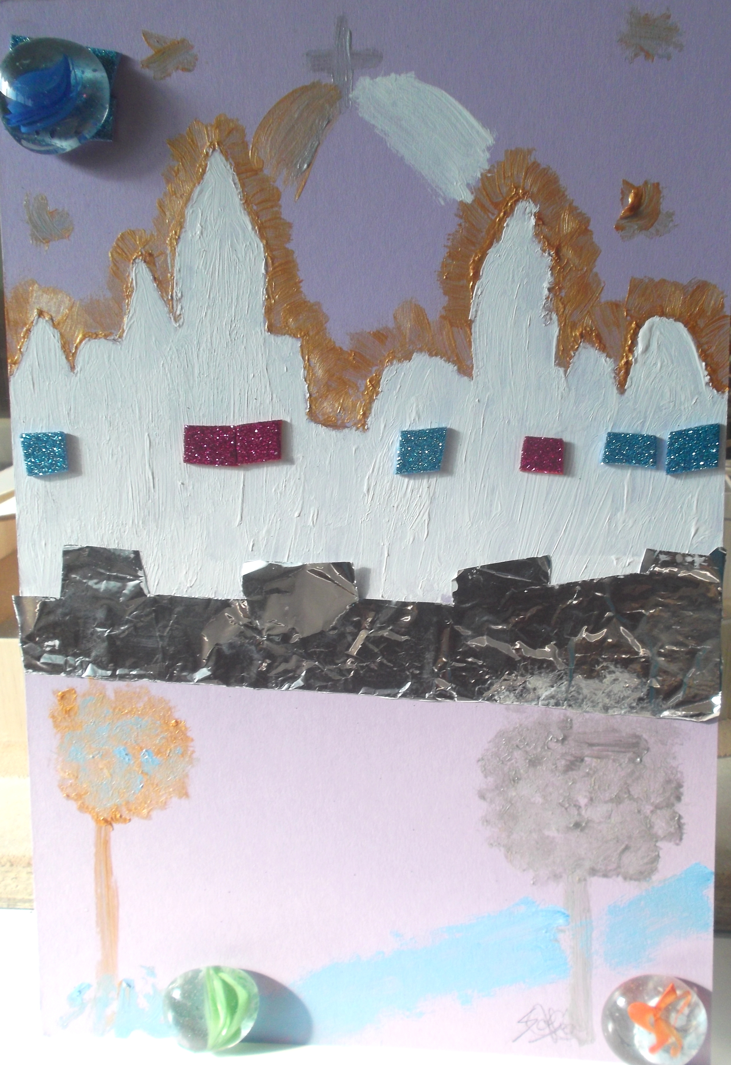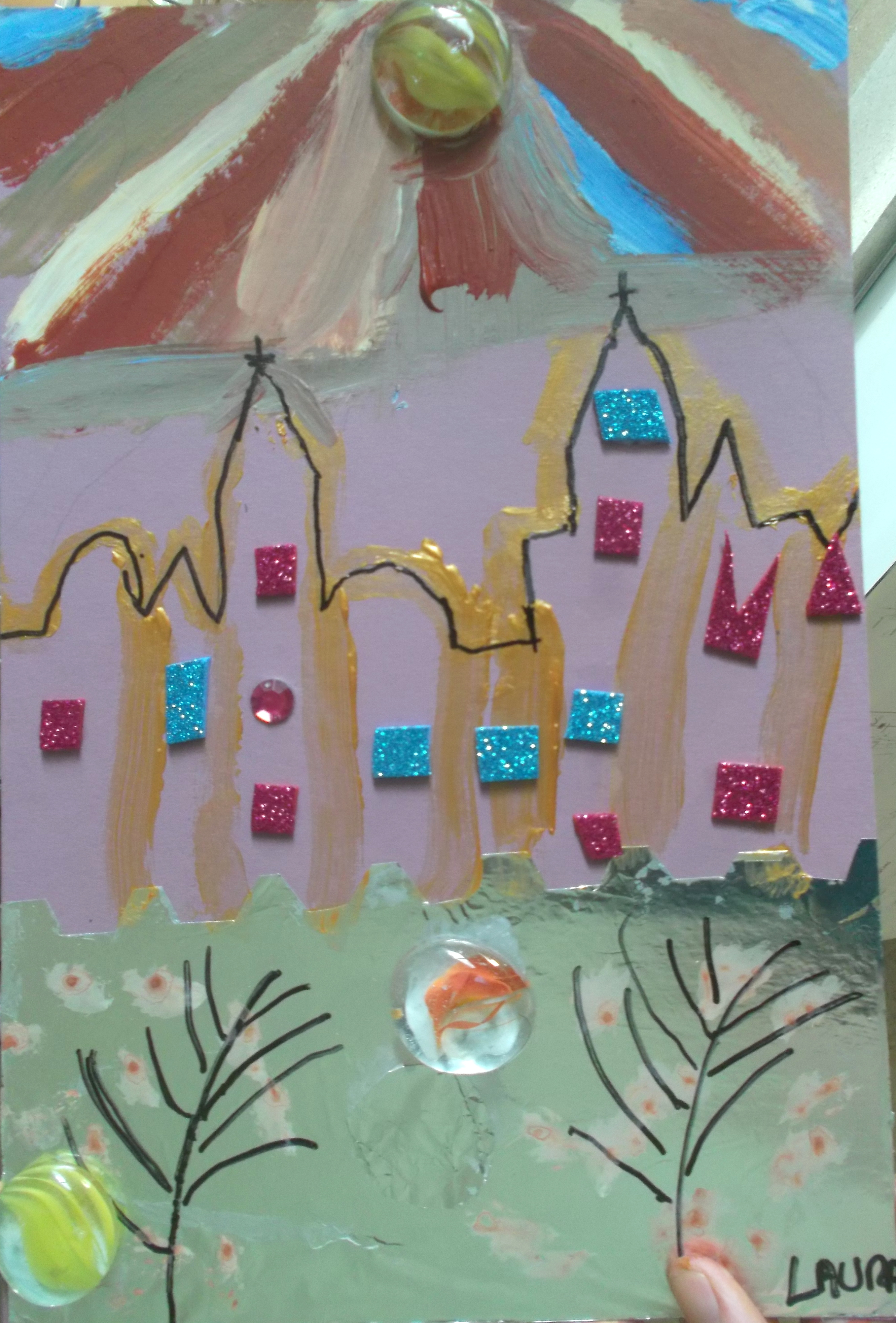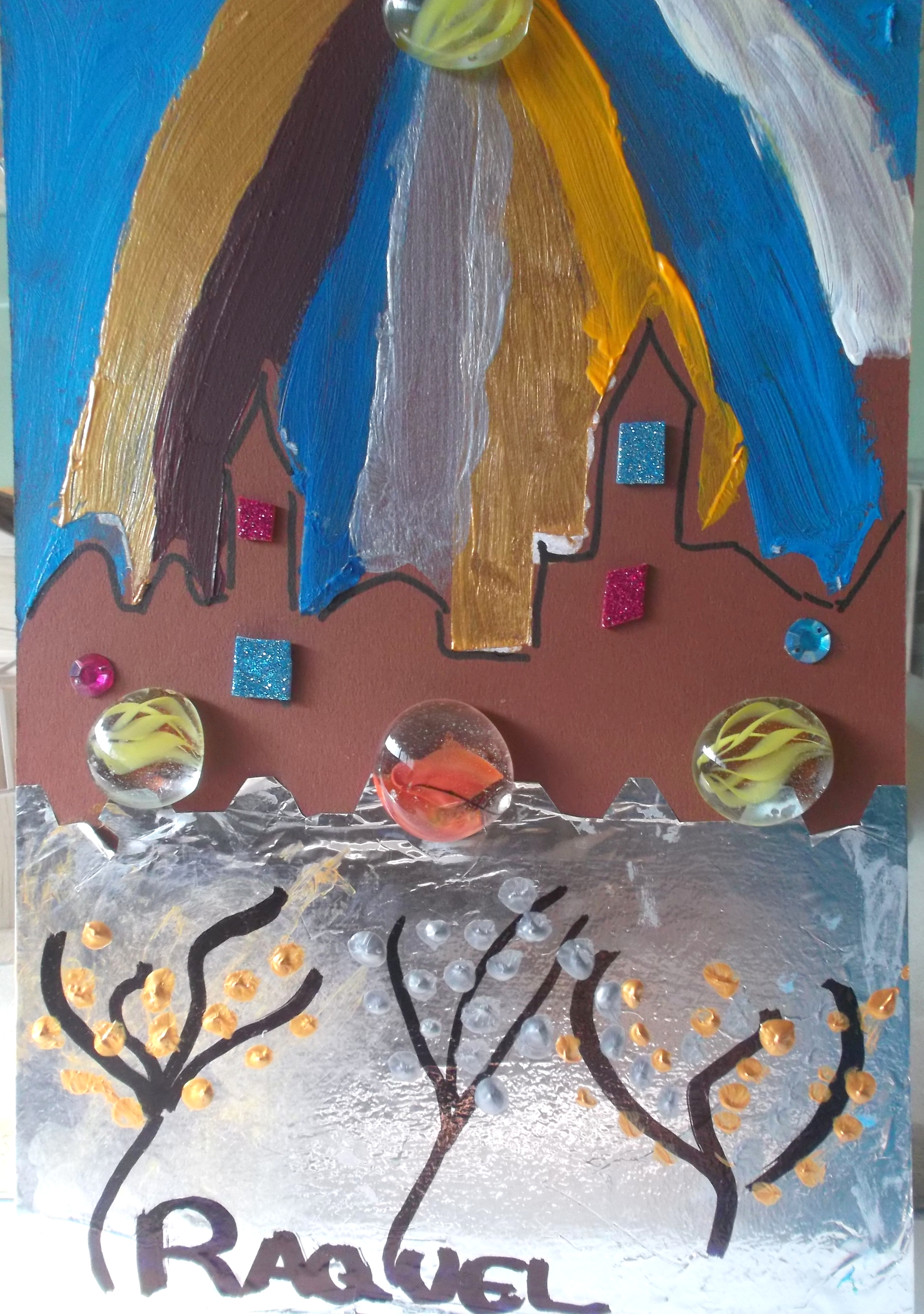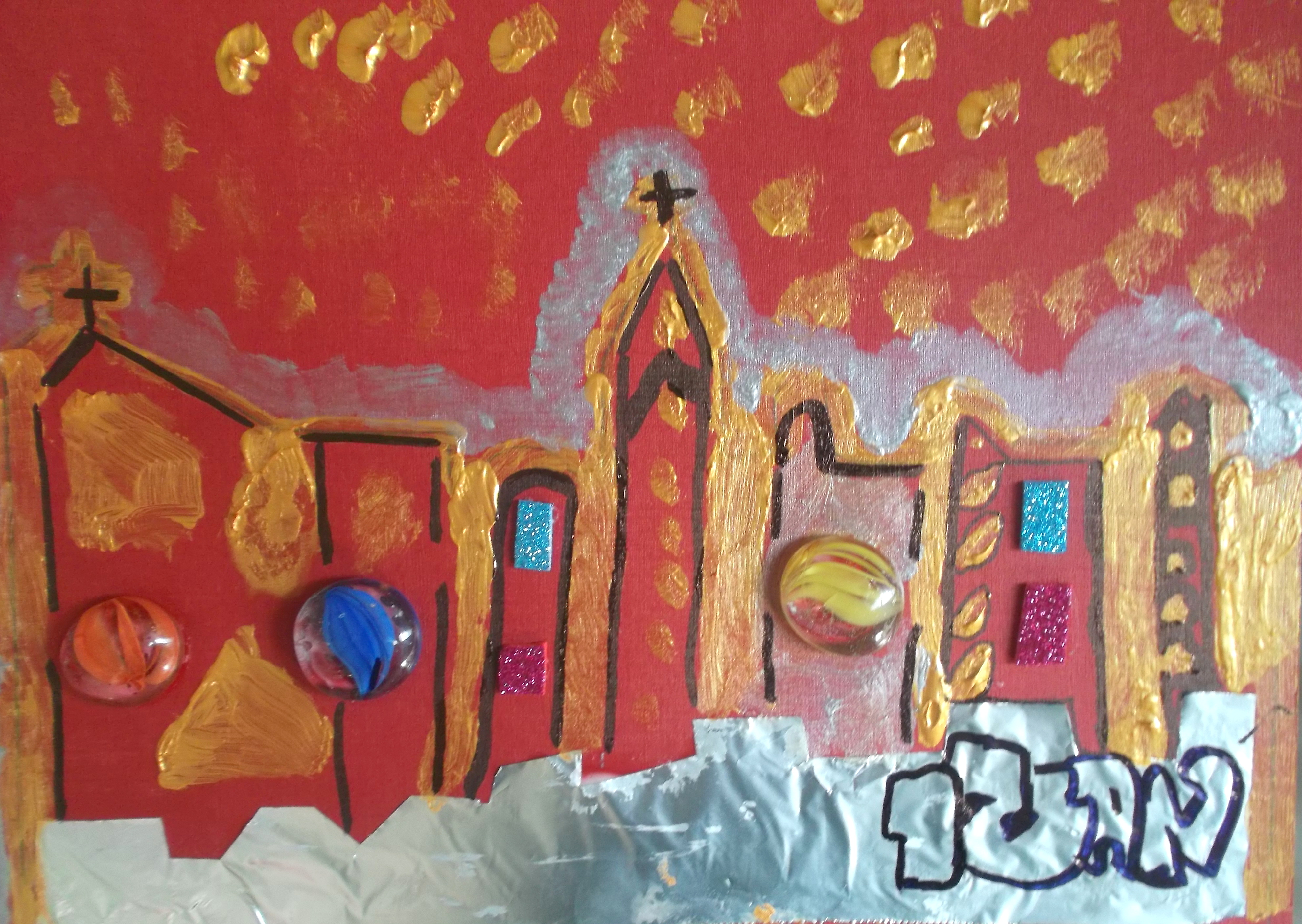 Acrilicos, cristales, brillos, lentejuelas, colores plata y oro… Los pequeños artistas han utilizado todos estos materiales para plasmar la belleza de Jerusalen.