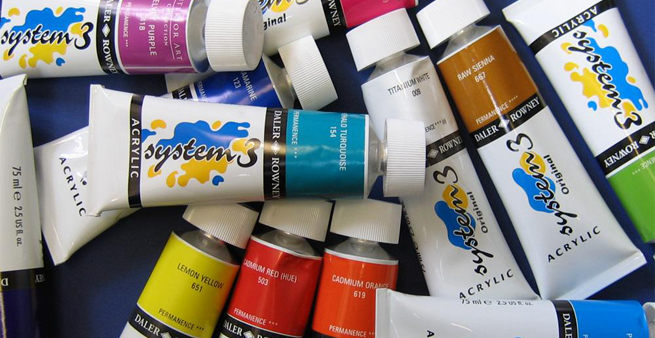 Pinturas acrílicas: las pinturas acrílicas están compuestas de pigmentos y aglutinante. Como aglutinante se utilizan polímeros plásticos. Existen gran variedad de pinturas acrílicas, desde aquellas empleadas para trabajar sobre madera, escayola…hasta aquellas empleadas para las artes plásticas con gran variedad de gama cromática y de alta calidad.