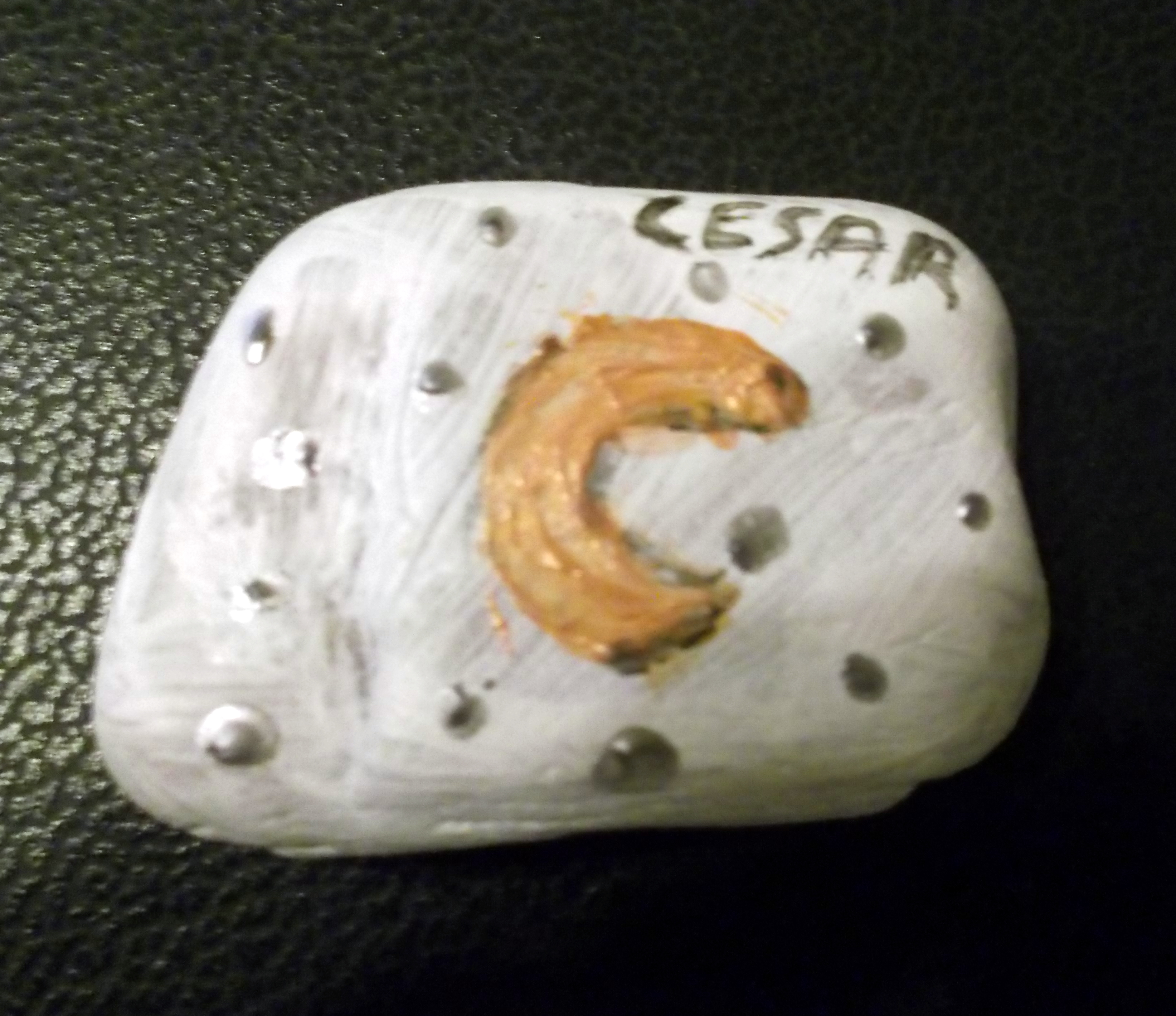 Pintamos con pintura blanca la cara de la piedra donde vamos a dibujar. Cuando haya secado, dibujamos con lápiz lo que queramos (casa, arboles, animales….)