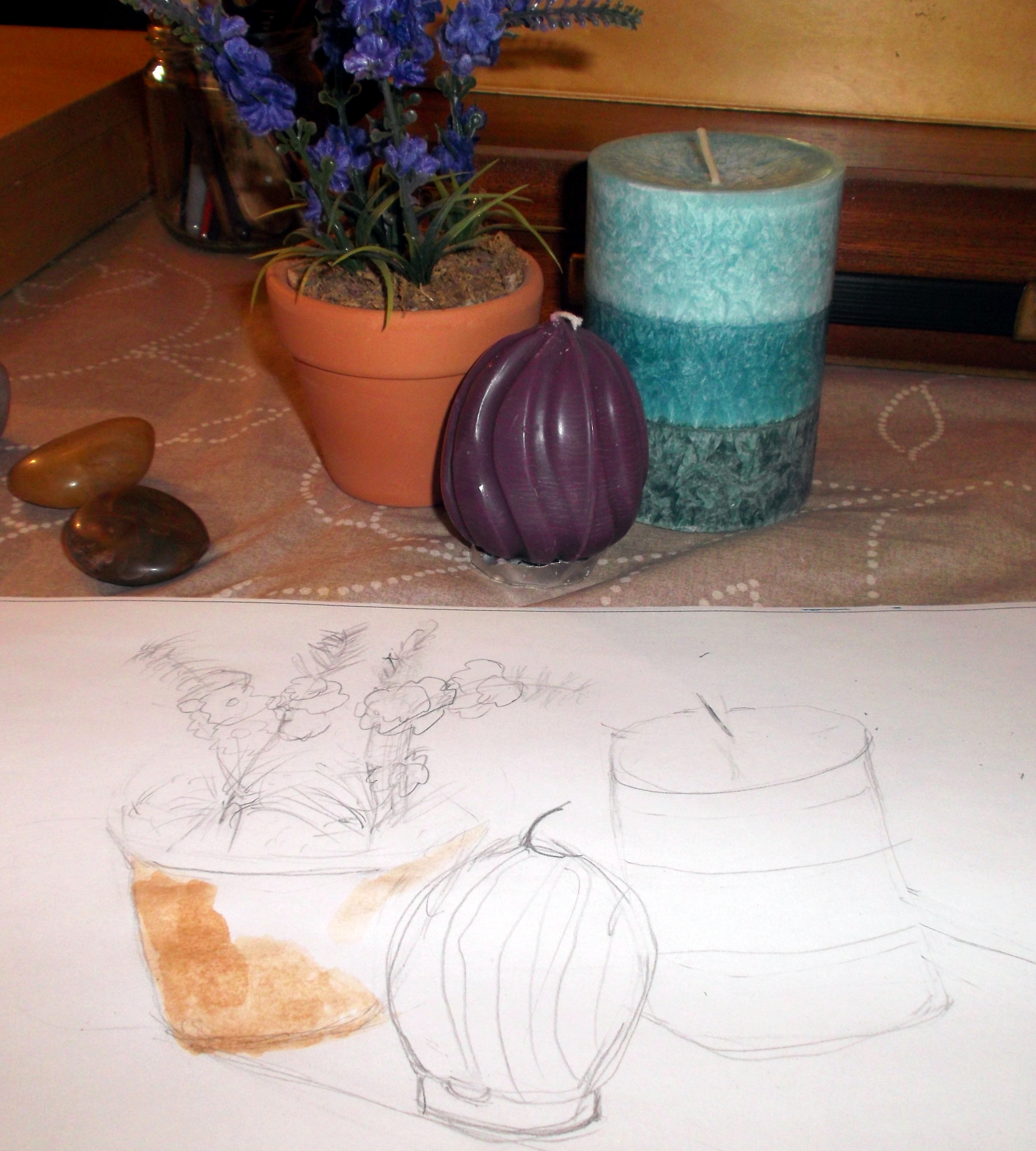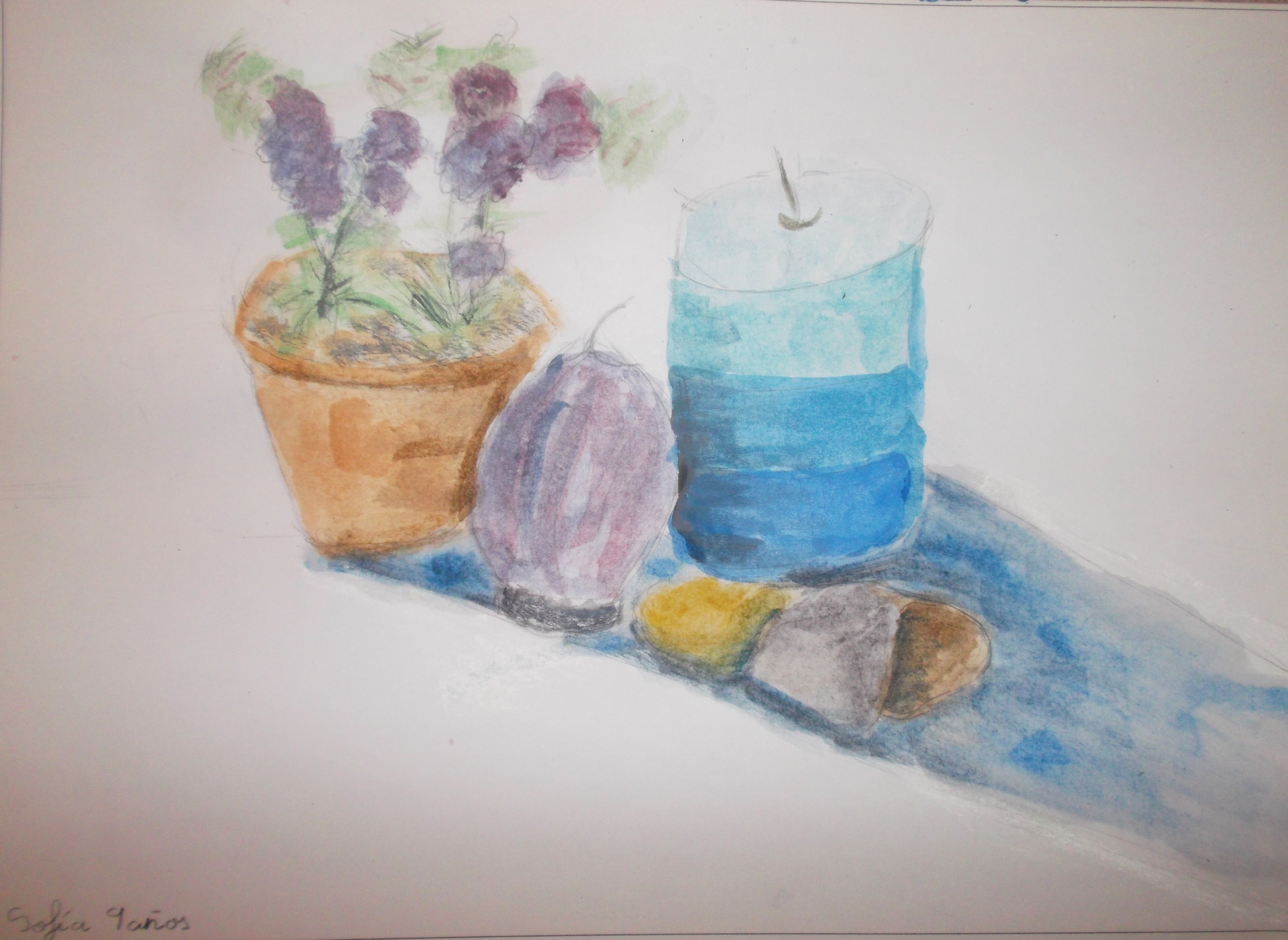Ha sabido captar las diferentes alturas y volúmenes, y reflejar la luz y la sombra en esté precioso bodegón realizado con acuarela acuarela.