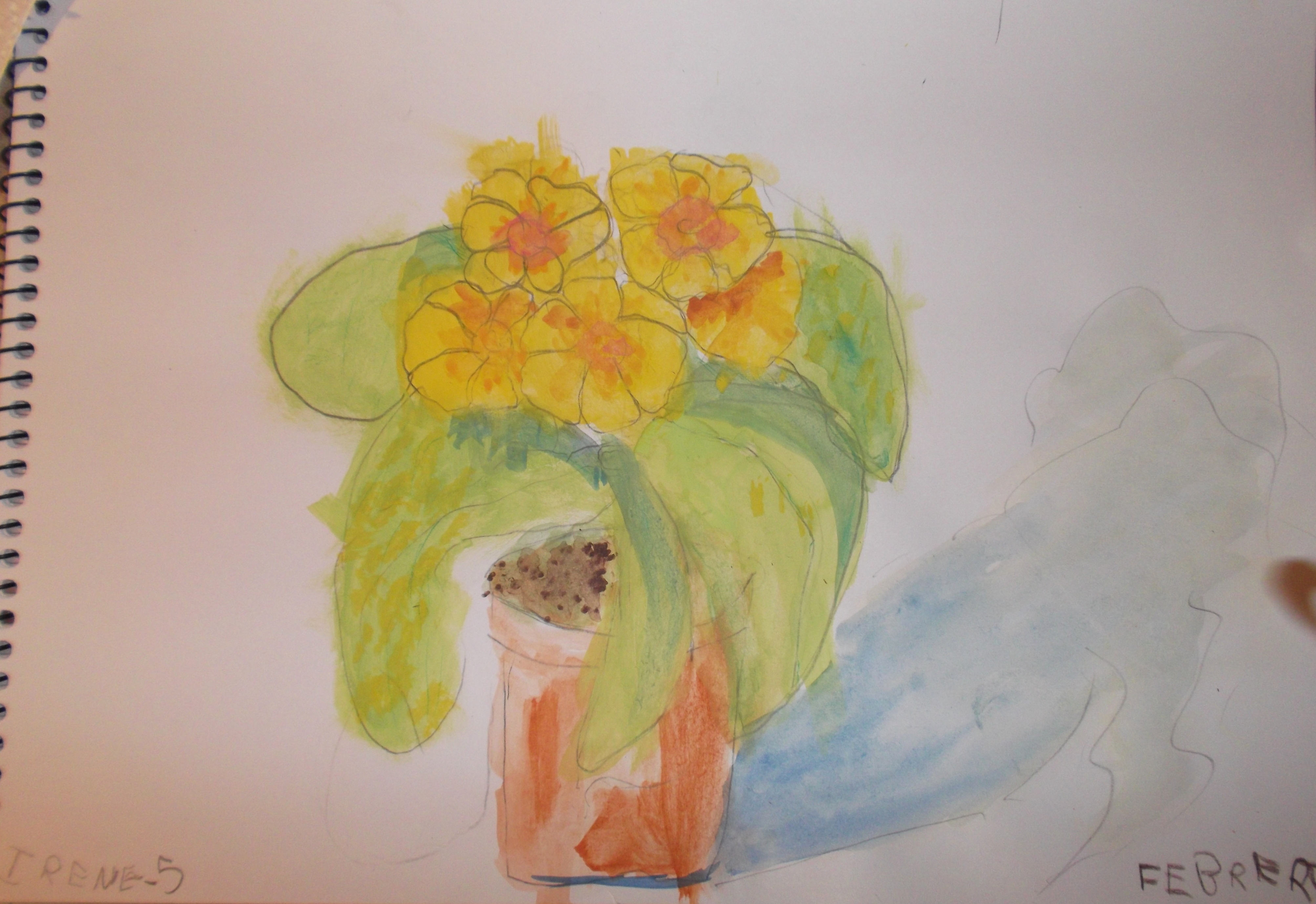 PRIMEROS TRABAJOS DEL CURSO. MACETA CON FLORES. IRENE.