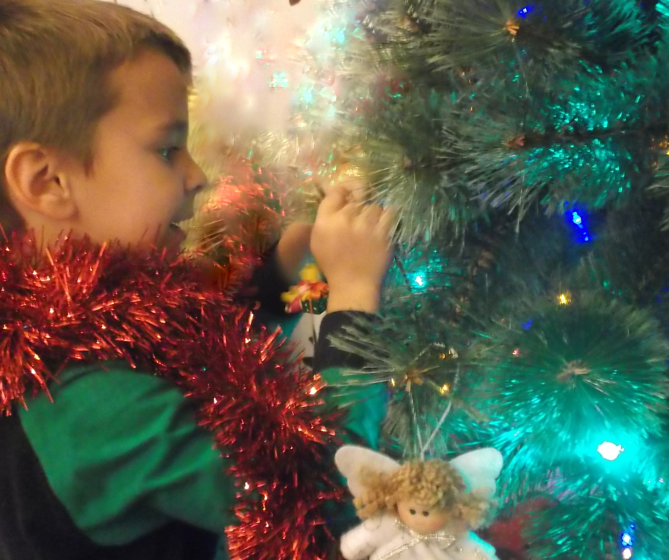 El árbol de Navidad lo hemos decorado mientras escuchábamos villancicos, y lo hemos llenado de adornos hechos por los niños.