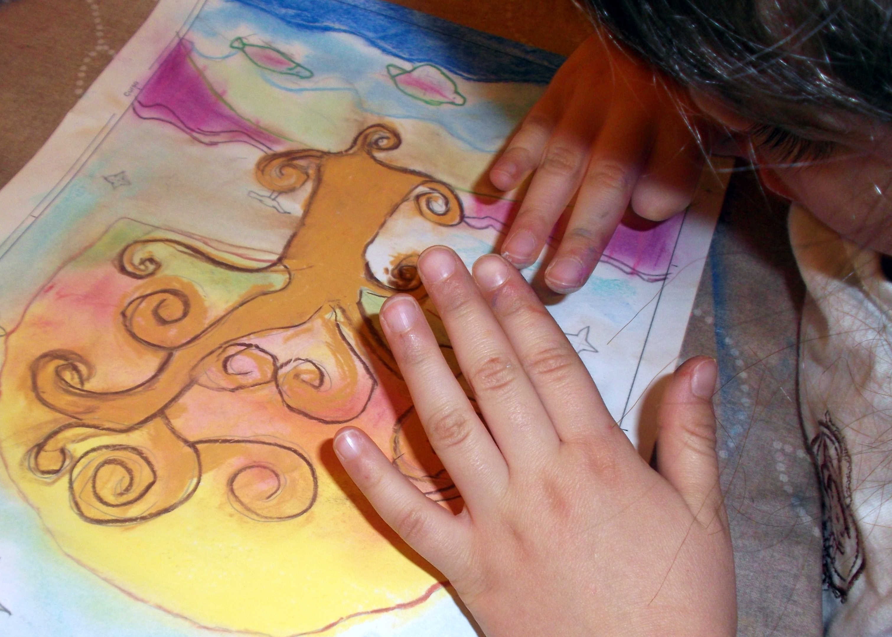 dibujo al pastel pintado por niños arbol pintado con pasteles