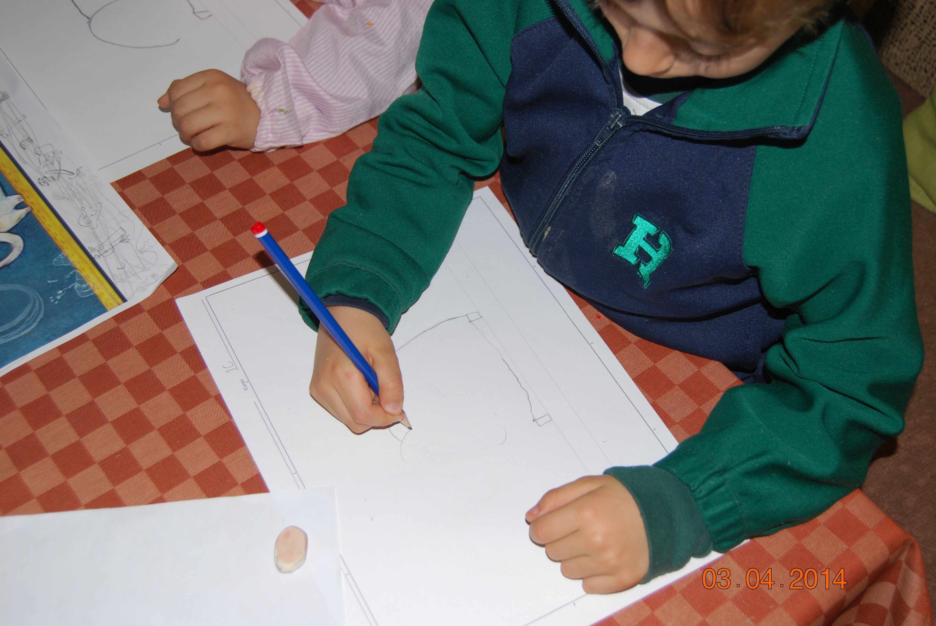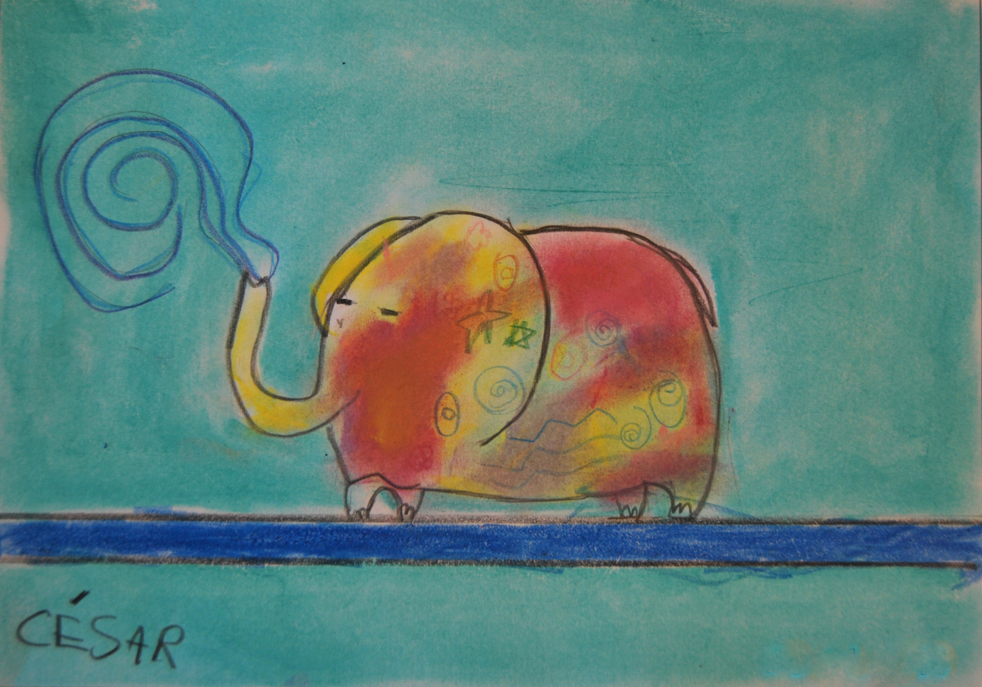 César y Raúl, de la clase de los pequeños, han demostrado su arte con los pasteles y su imaginación pintando estos elefantes de alegres colores
