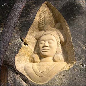 La obra es de los artistas Jorge Maldonado y Eulogio Reguillo y desde 1992 han conseguido arrancar de la piedra arenisca unos rostros de cuento que cautiva a todo al que allí se acerca.