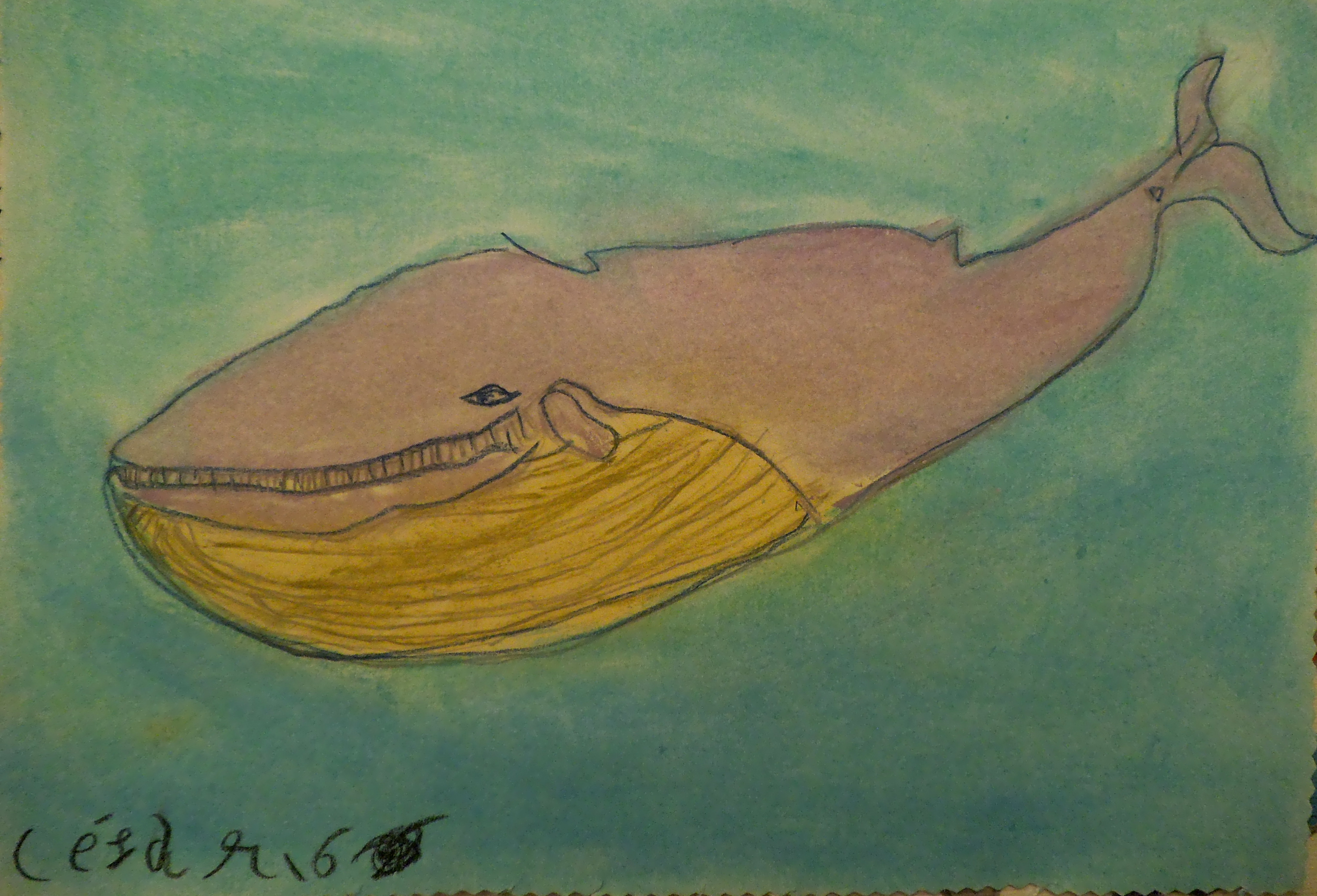 Ballena pintada al pastel por niño     Ballena pintada al pastel por niño