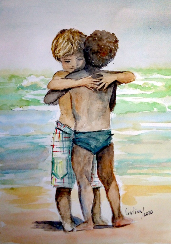Un abrazo inocente, pleno y espontaneo, que no sabe de raza ni color. Basta un abrazo para reconocer que todos somos hermanos, sin importar quienes somos ni de donde venimos. Para recordarnos la fuerza del amor y de la unión. Cuando nos abrazamos pasamos a ser uno solo. Como siempre, deberíamos de aprender lo mucho que nos enseñan los niños.💕💕