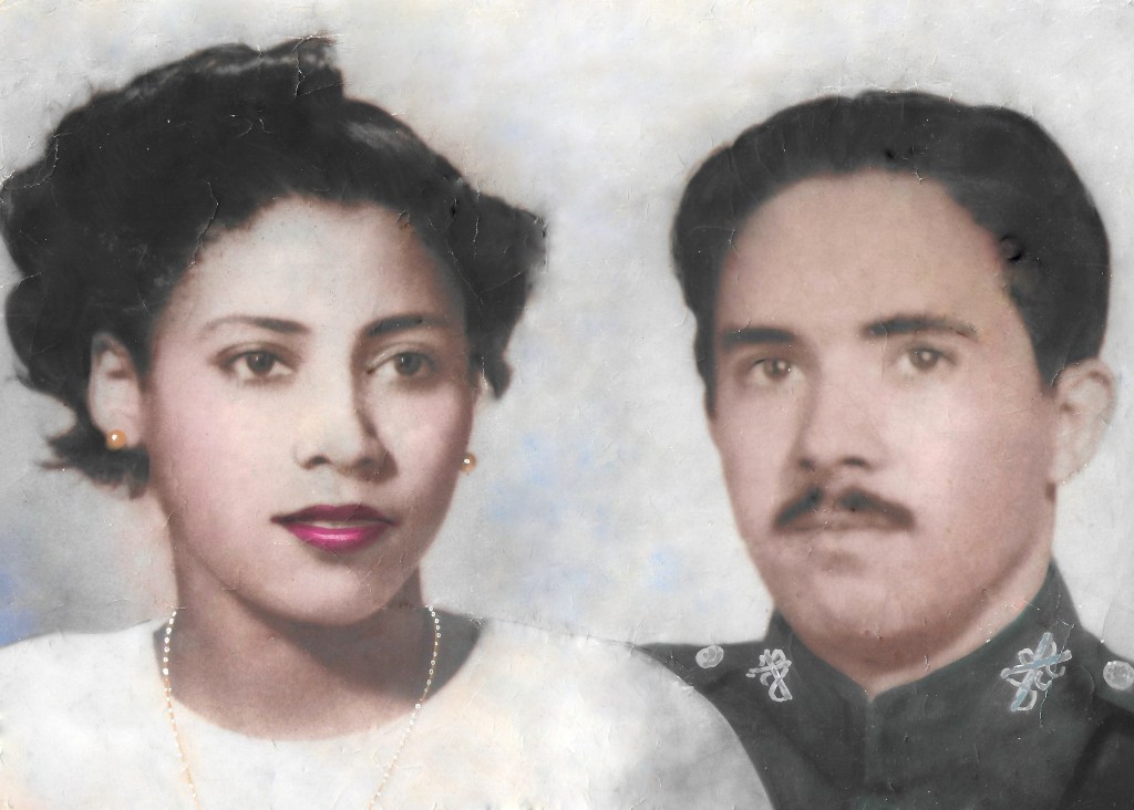 Este es el estado que presentaba la fotografía antes de la restauración. Los que aparecen son Mario y Cristina, los padres de Caridad, quien ha confiado en mi para este apasionante encargo.