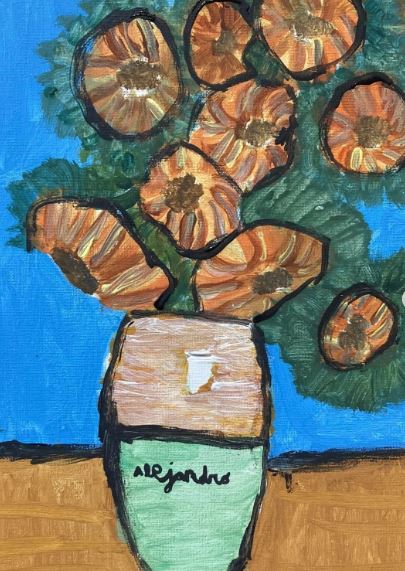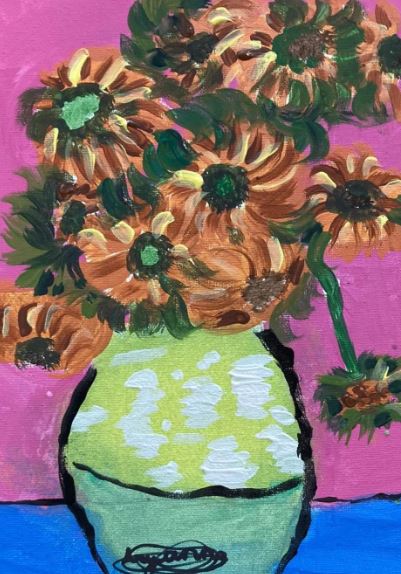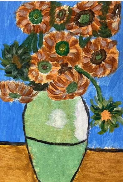 Resultado de nuestro taller monográfico del sabado sobre Van Gogh, interpretando su maravillosa obra de los girasoles. Enhorabuena pequeños artistas ![]()