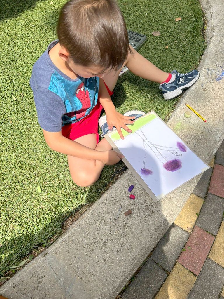 Han parado un poco las lluvias, y nuestros pequeños artistas, salen a pintar al aire libre