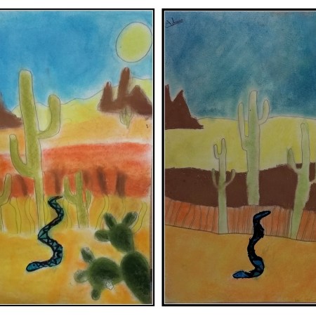 PESCANDO AL ATARDECER, PASTEL Y ACRÍLICO – MARÍA, 11 AÑOS