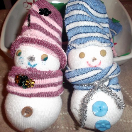 MUÑECO DE NIEVE CON CALCETIN Y BOLAS DE CORCHO.